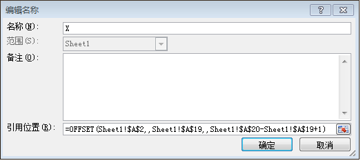 3、定义名称建立内存数组的数据源(有二个变量的情况),打开公式--定义名称--新建名称
