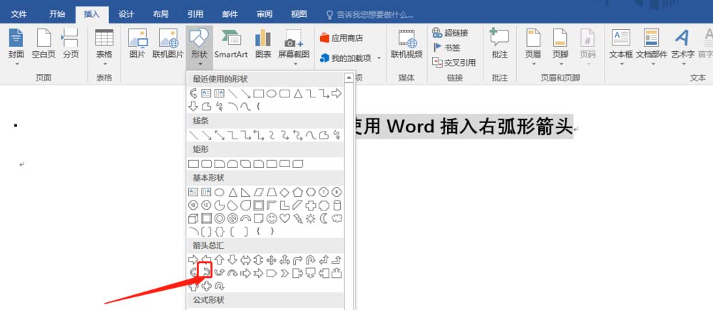 word中想要插入右弧形箭头,该怎么插入呢?下面我们就来看看详细的教程。