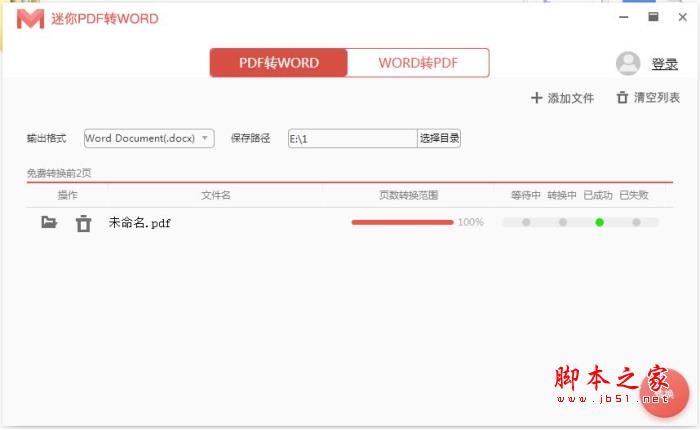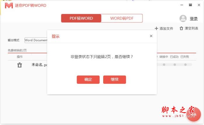 3、点击“转换”,软件在未登陆状态下仅能转换两页