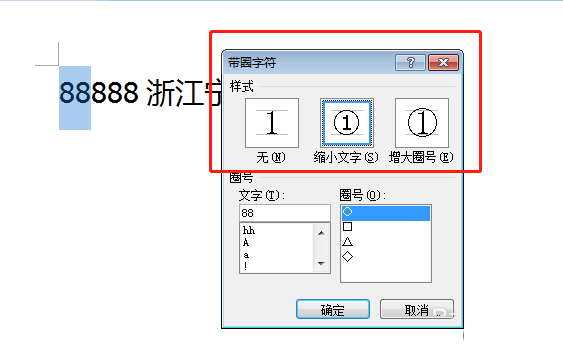 4、在圈号选择一款形状边框,比如圆圈;