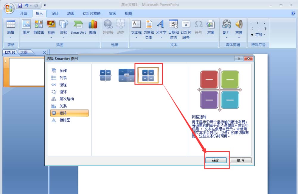 ppt中想要制作一个矩阵图,该怎么制作呢?我们需要使用smartart来制作,请看下文详细介绍。