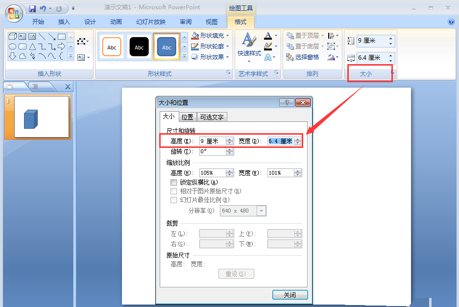 9、这样就可以根据需要在Powerpoint中绘制出想要大小的长方体了。
