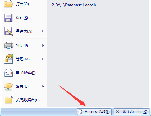 2、点击了的Microsoft Office Access的左上角中的更多菜单的选项。