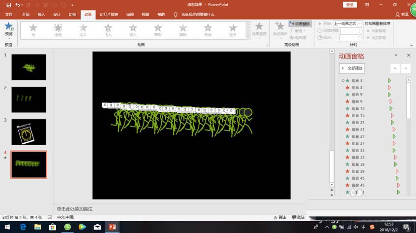 3、然后我们要调整小人的位置把它们之间的间距缩小。(因为刚刚间距放大只是为了方便我们操作),然后以四个小人为一组全选中复制粘贴并吧复制粘贴好的小人排在后面可以多复制几次小人越多效果更好。点击播放就可以看到制作好的动画啦。