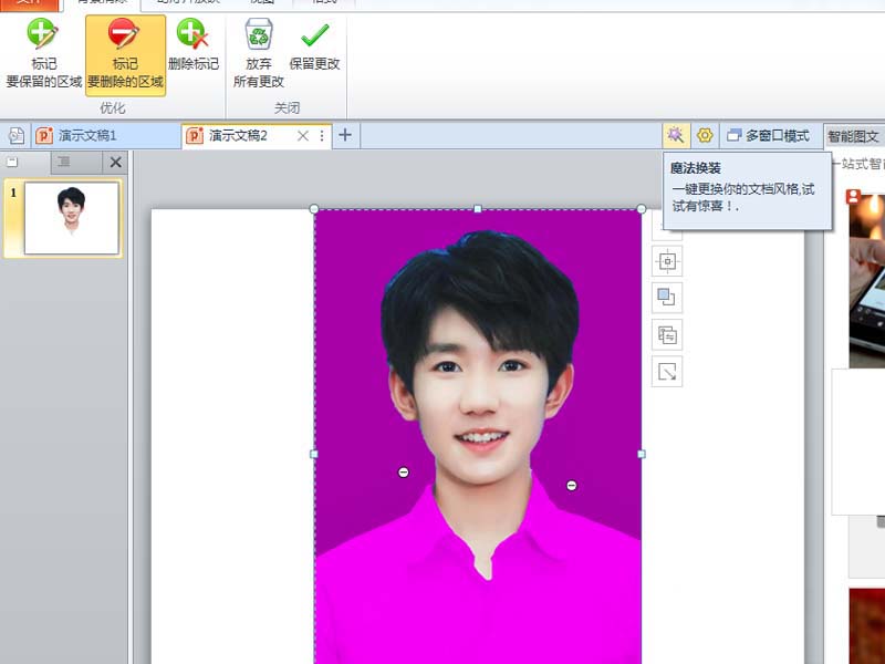 ppt中想要制作一个一寸照片,该怎么制作证件照效果呢?主要利用了抠图换背景以及组合命令,下面我们就来看看详细的教程。