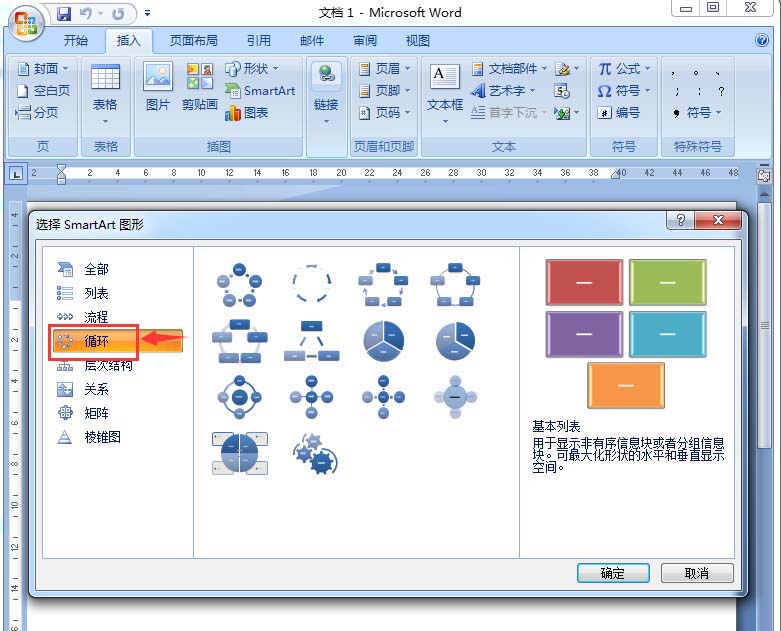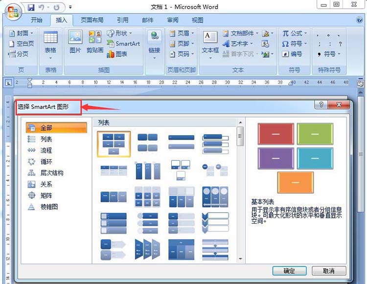 4、进入选择SmartArt图形对话框;