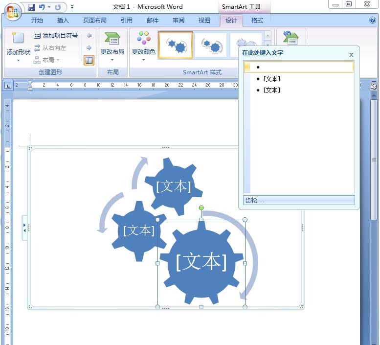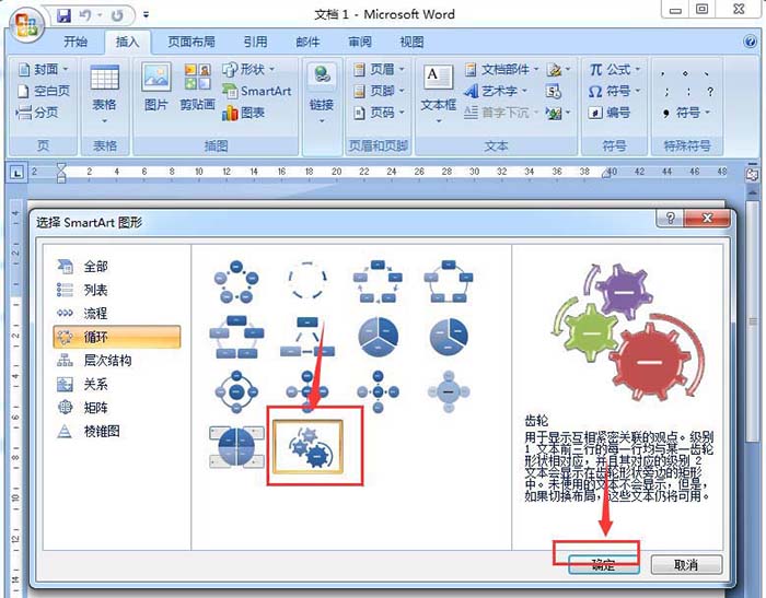 7、将齿轮循环样式插入到word中;