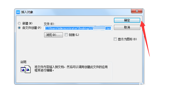 6、在点击确定之后,就可以在文档中看到TXT文件了,如图一所示;另外,要找到“对象”也可通过这个路径:wps文字——插入——对象,也是可以打开的,如图二所示: