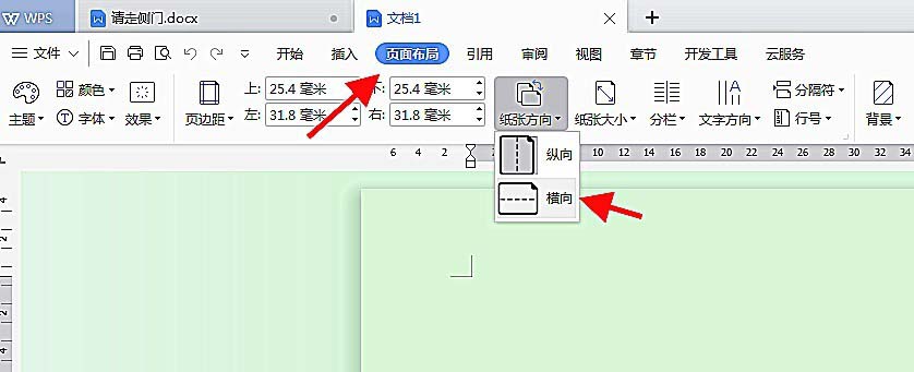 1、打开一个空白的Word表格,如图所示:选择工具栏“页面布局---横向”,设置成横向纸张;