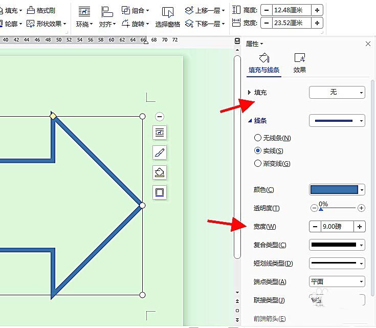 4、选择“设置对象格式后”就会出现箭头的“属性”界面,在其中可以选择自己喜欢的箭头的属性,