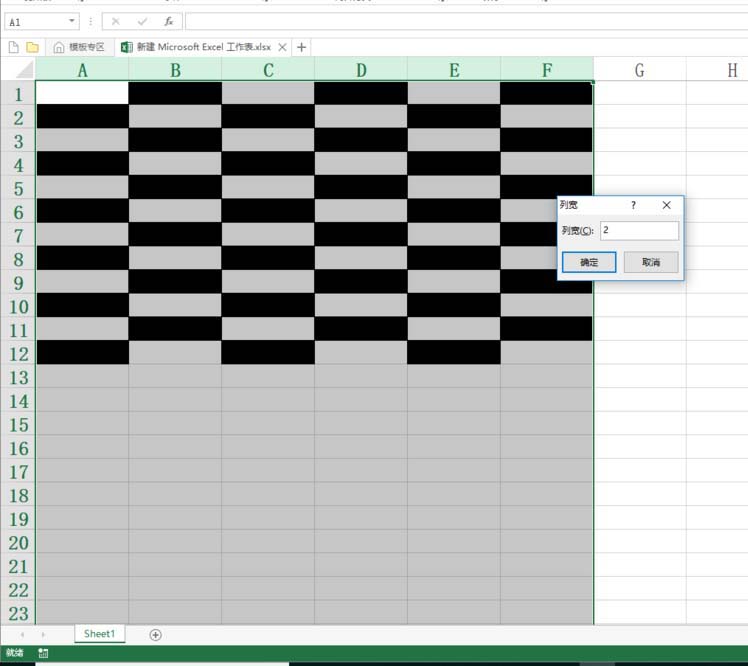 6、确定规则后,黑白棋盘就填充好了,然后适当调整行高或列宽即可。