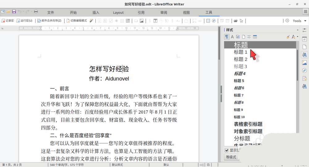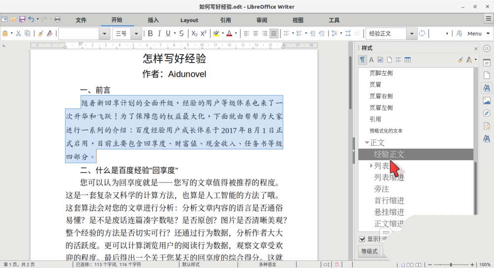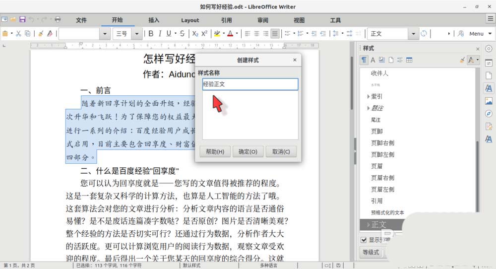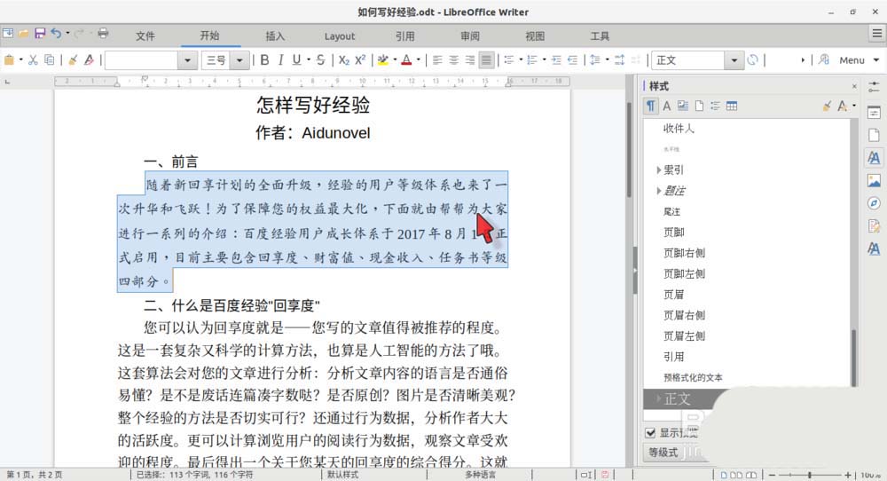 LibreOffice Writer除了对预置样式进行修改之外,还可以从已经格式化好的文本(或段落)直接创建新的样式,该怎么直接创建新样式呢?下面我们就来看看详细的教程。