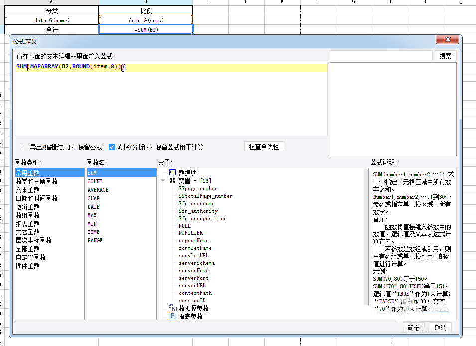 FineReport报表设计器设计报表时,如果对数值列进行汇总求和,并且使用到文本格式中数字四舍五入取整,会遇到这么一个问题:列的字段值小数部分不大于5,而汇总起来又大于5,这样会导致汇总求和的数据比上面的列字段值加起来大1或2。如果要解决这个问题,需要使用到MAPARRAY函数。具体该怎么操作呢?下面我们就来看看详细的教程。