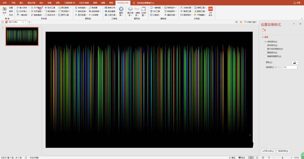 1、启动PPT,新建PPT文件,设置幻灯片背景颜色为黑色。