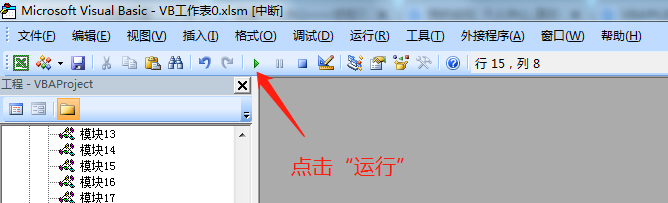 5、在VBA界面,点击工具栏内的[运行]按钮!