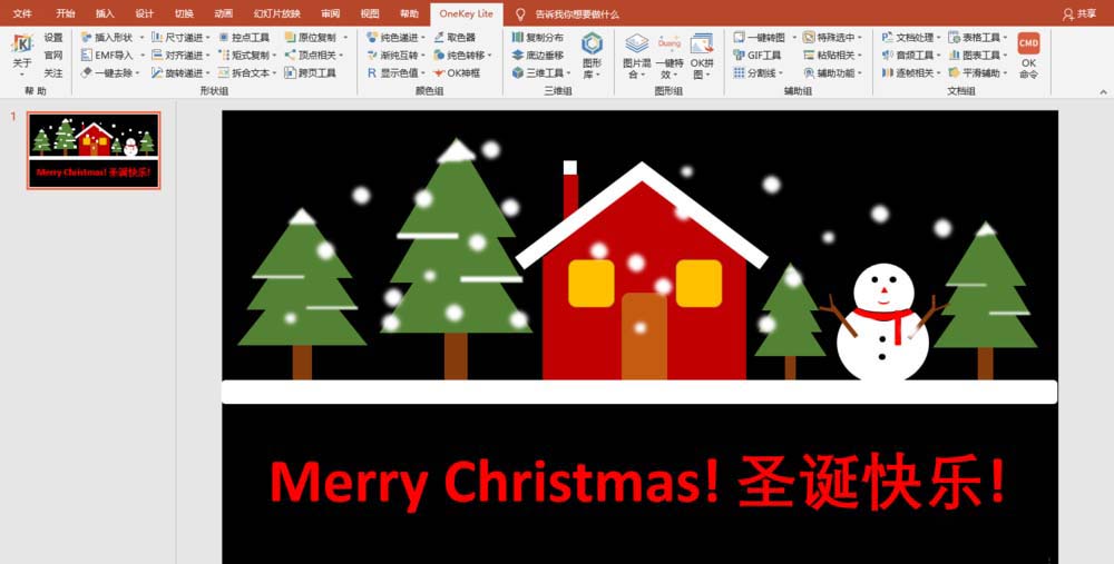 8、插入文本框,设置文本格式。放映幻灯片,感受圣诞到来的喜悦。