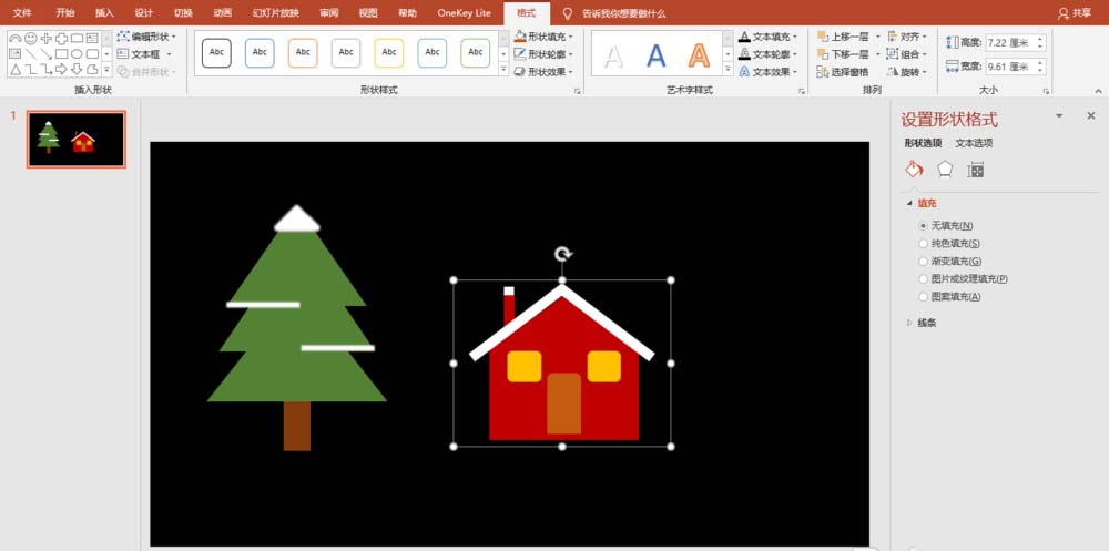 2、调整形状大小、位置,制作出圣诞树,然后填充适当的颜色。