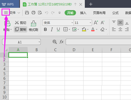 3、小编就进入到WPS表格界面后,【文件】左侧这里,【三灰色线】点触下,如图。