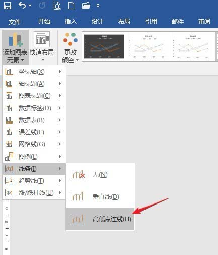 5、关闭Excel表格,选中折线图,点击【添加图表元素】—【线条】—【高低点连线】。