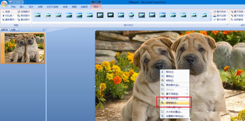 5、右键单击图片,选择链接效果