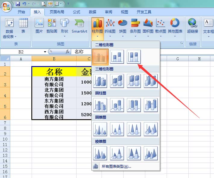 2、我们把表格转换成最常用的柱形数据图,如下图