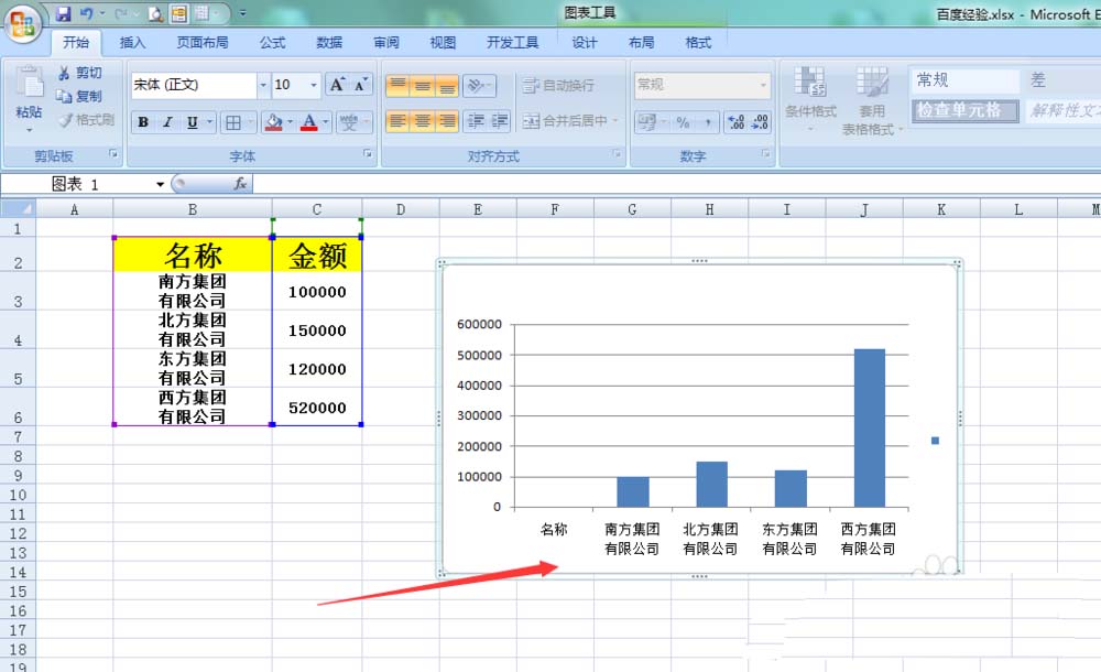 excel表格中的数据在制作成图表的时候,发现公司名字太长了,想要双行显示,下面我们就来看看详细的教程。