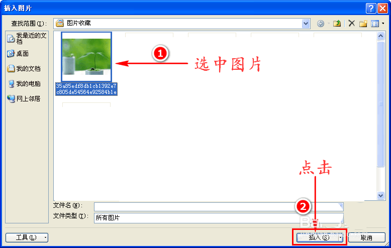 4、紧接着我们点击扩展项中的“文件”按钮,这时会弹出插入图片对话窗。选中需做背景的图片,点击“插入”按钮。如图所示: