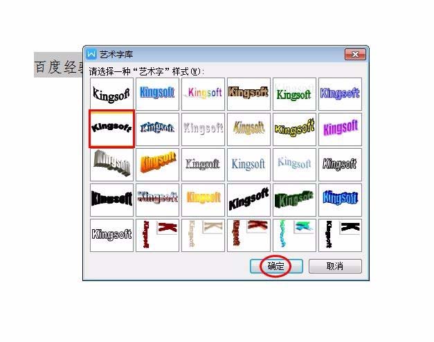 4、在艺术字库中选择弧形艺术字,单击“确定”按钮。