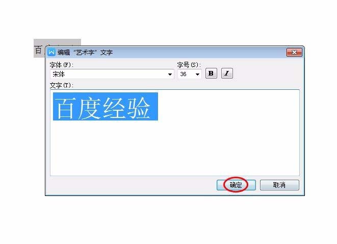 5、可以根据自己的需要设置艺术字的字体和字号,单击“确定”按钮。