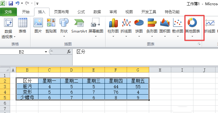 4、之后我们点击其他图表下方的下拉箭头;