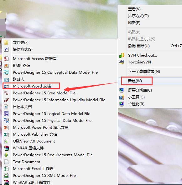 1、右键新建一个word,命名为名片制作,如下图所示。