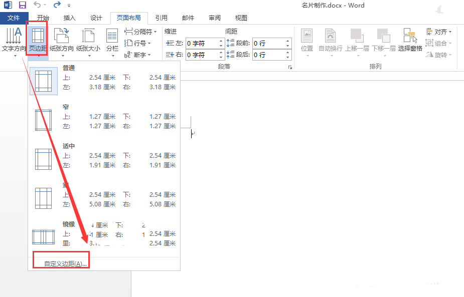 3、找到点击页面布局的页面边距进去,弹出并选择自定义边距进去。