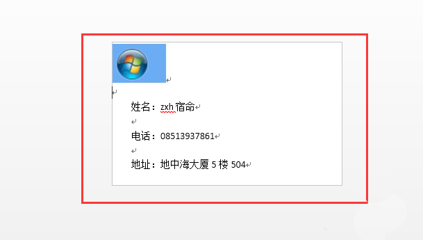 7、然后回到word界面,名片的大概样式就设置好了。