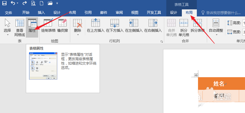 3、比如,现在需要把这个表格放置在版心以外的页面左侧,那么就需要把表格进行旋转。首先,开启表格的文字绕排。光标置于表格,点击【布局】—【属性】。