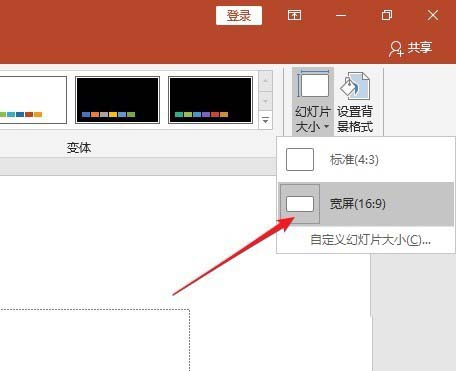 2、将页面设置为16:9的宽屏,得到的效果会更好。