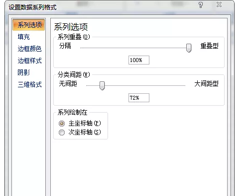 4、选择图表“系列1”,设置系列选项如图4所示,填充为“纯色填充——蓝色”,边框颜色为“无线条”。