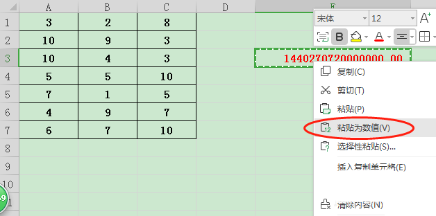 6、右击鼠标,点击‘粘贴为数值’即可(如图)。