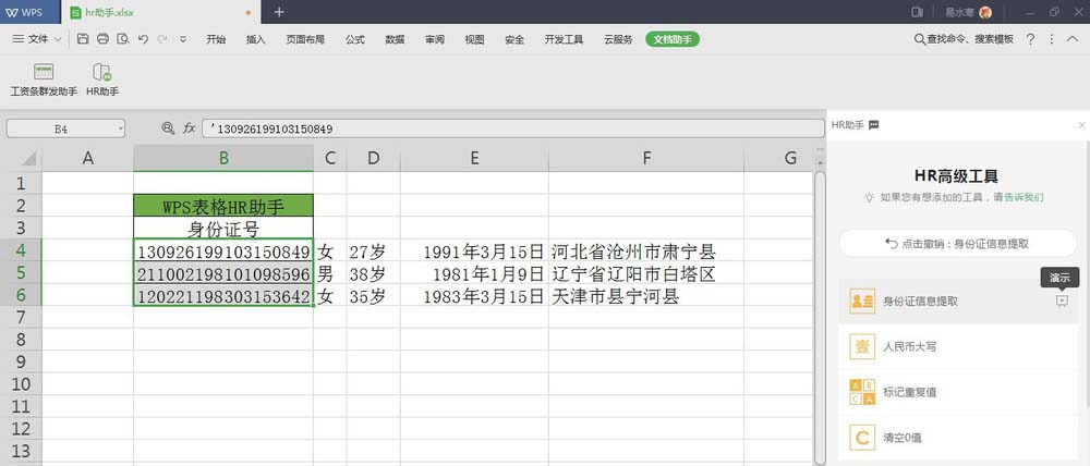 以上就是WPS表格HR助手快速提取身份证号中的身份信息的教程,希望大家喜欢,请继续关注脚本之家。