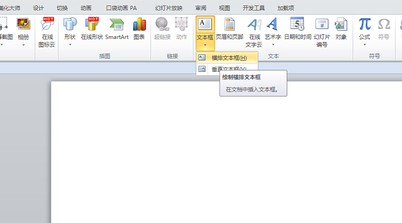 1、首先启动ppt2010,新建文档,插入文本框。