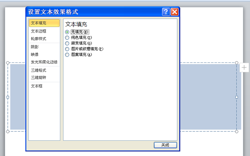 3、选择文字内容右键单击选择设置文本效果格式选项,调出对话框。