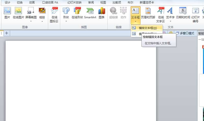 2、执行插入-文本框命令,插入一个横向文本框。