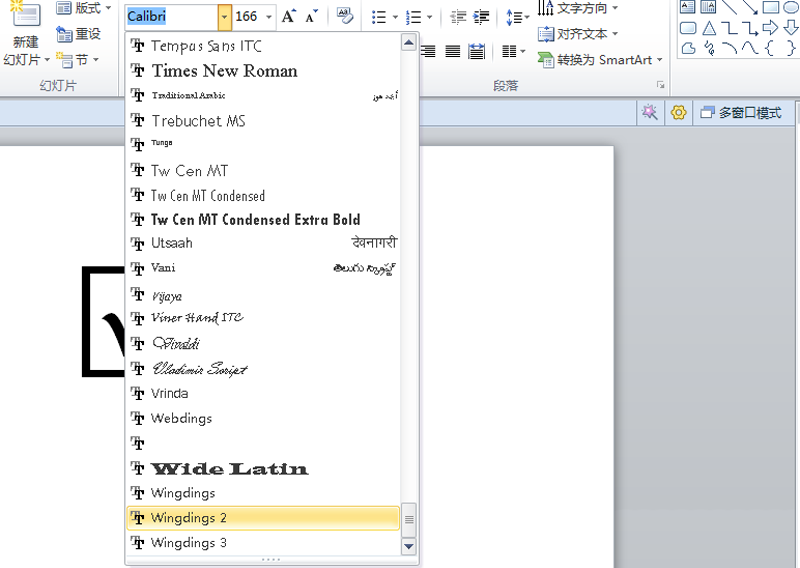 5、在选中的情况下,设置字体为wingding2.