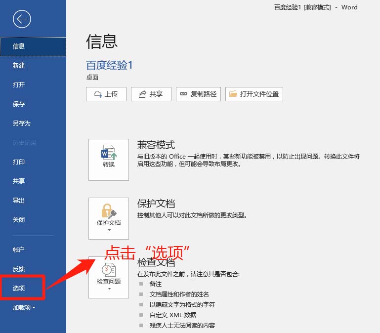 3、在弹出的窗口中,找到“选项”菜单并点击它。