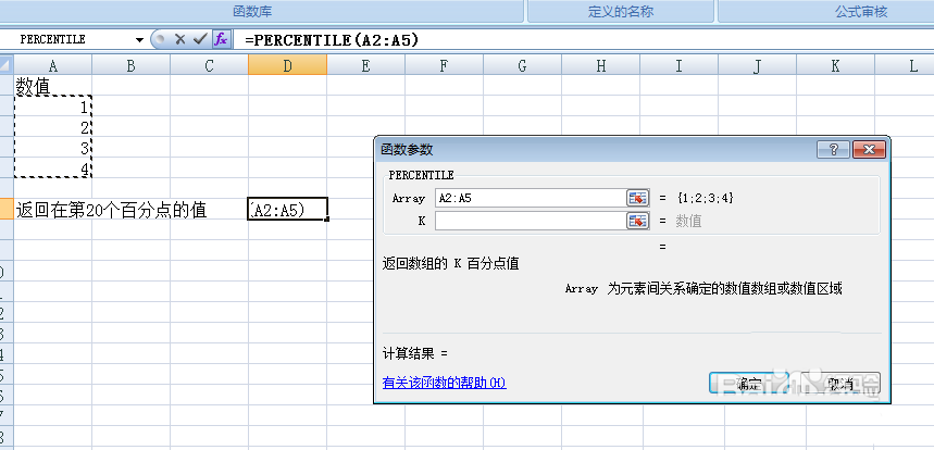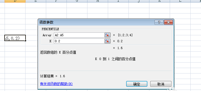 5、在K处输入要输入第K个百分点的值,比如0.2;