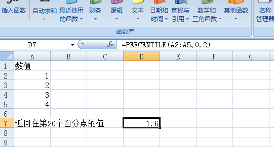 excel表格中想要返回在第K个百分点的值,如下已知一组数值,要返回在第20个百分点的值,我们可以使用函数PERCENTILE来求值,下面我们就来看看详细的教程。