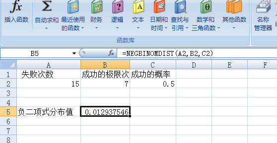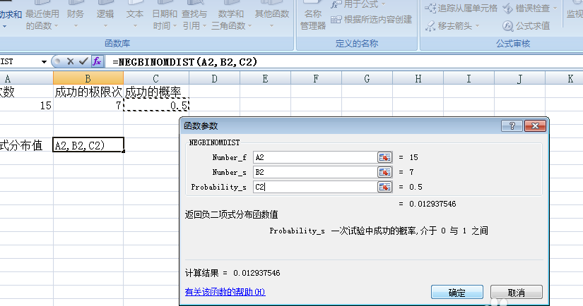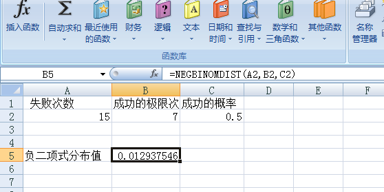 6、点击确定后我们求得负二项式分布值。