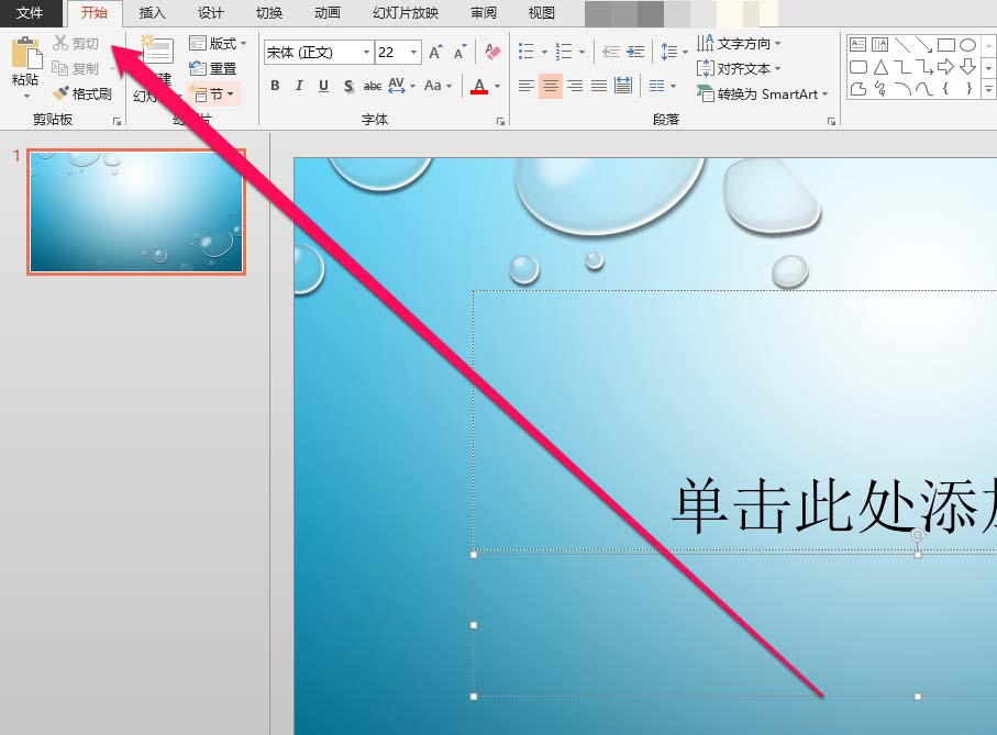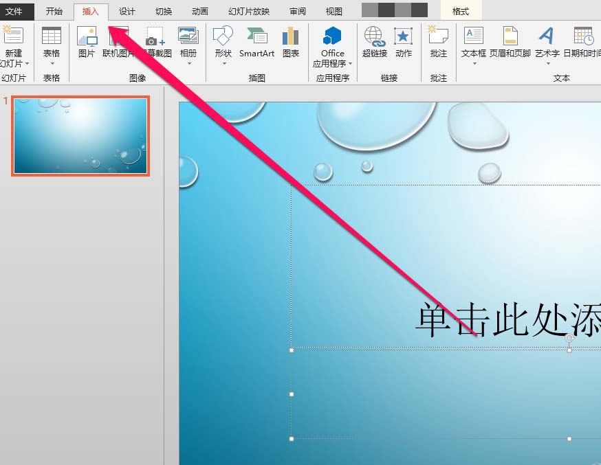 1、在PPT制作页面,点击工具栏。