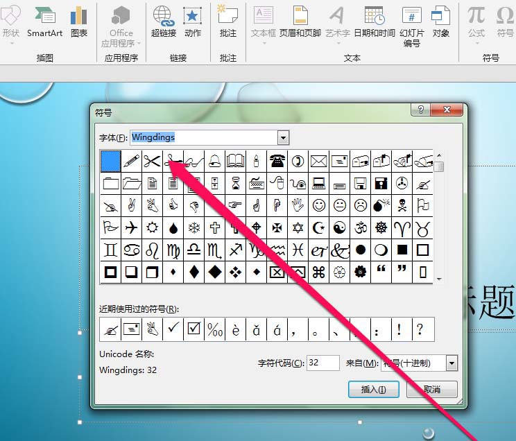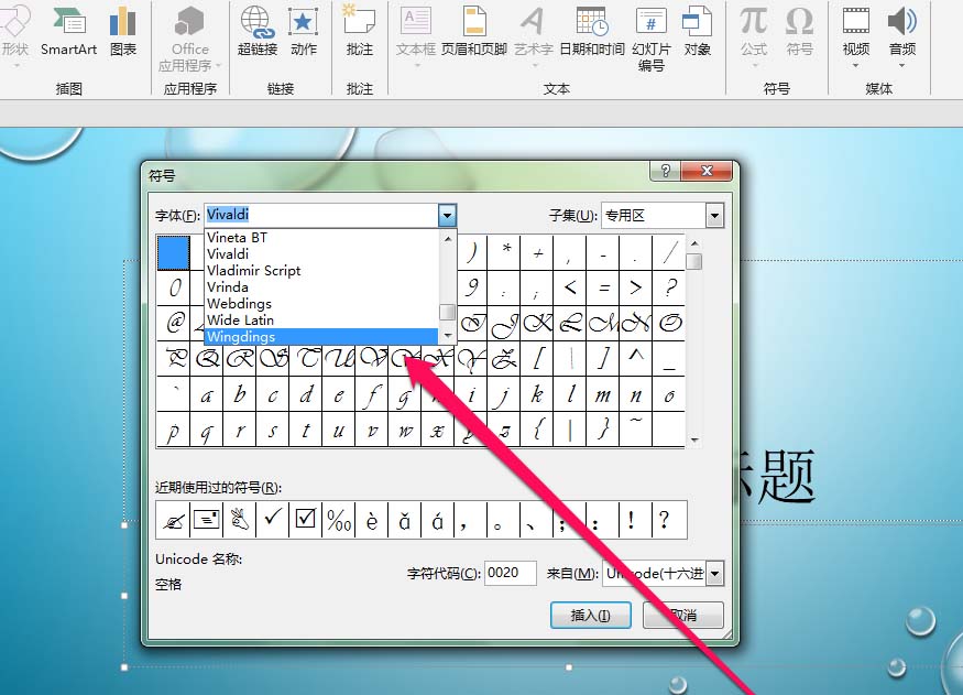 6、点击wingdings按钮,进入wingdings页面。