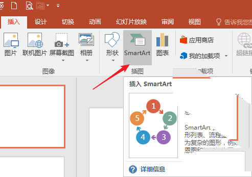 2、例如,需要做一页关于电话功能的幻灯片。先点击【插入】—【SmartArt】。