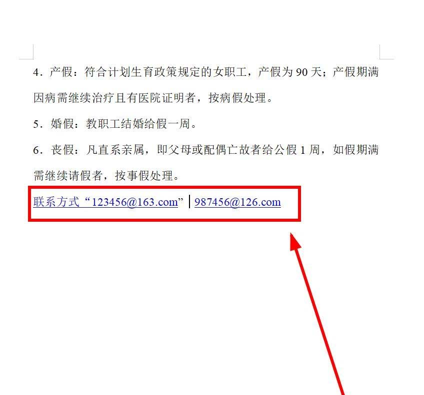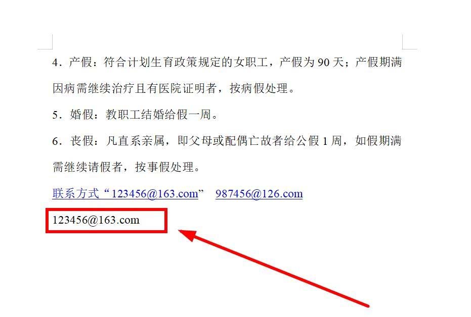 1、打开任意一个Word文档,或者新建一个文档,输入随意编制的邮箱地址“123456@163.com”“987456@126.com”,会发现自动带上超链接